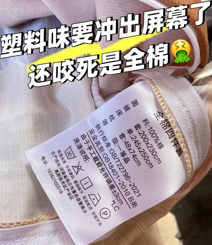 等到你拿到手会发现,这种颜色鲜艳的四件套经常掉色,还会产生刺鼻的味道,产生的甲醛对我们的危害非常大。